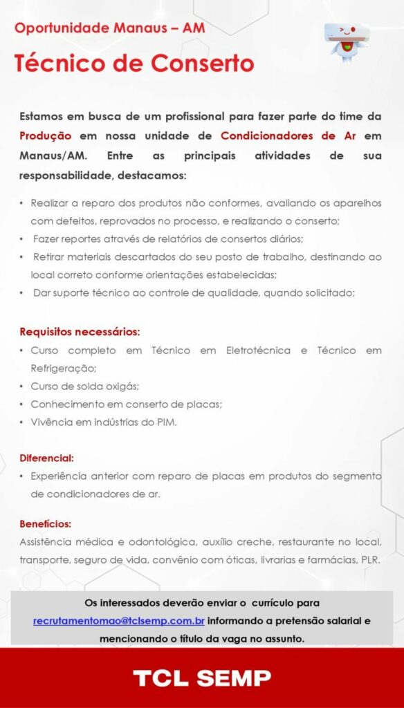 Empresa TCL Semp abre seleção para novas vagas de emprego em Manaus