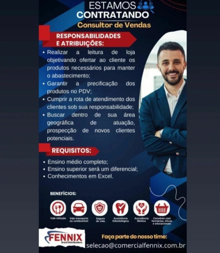 Fennix Distribuidora seleciona Consultor de vendas; Envie seu currículo!