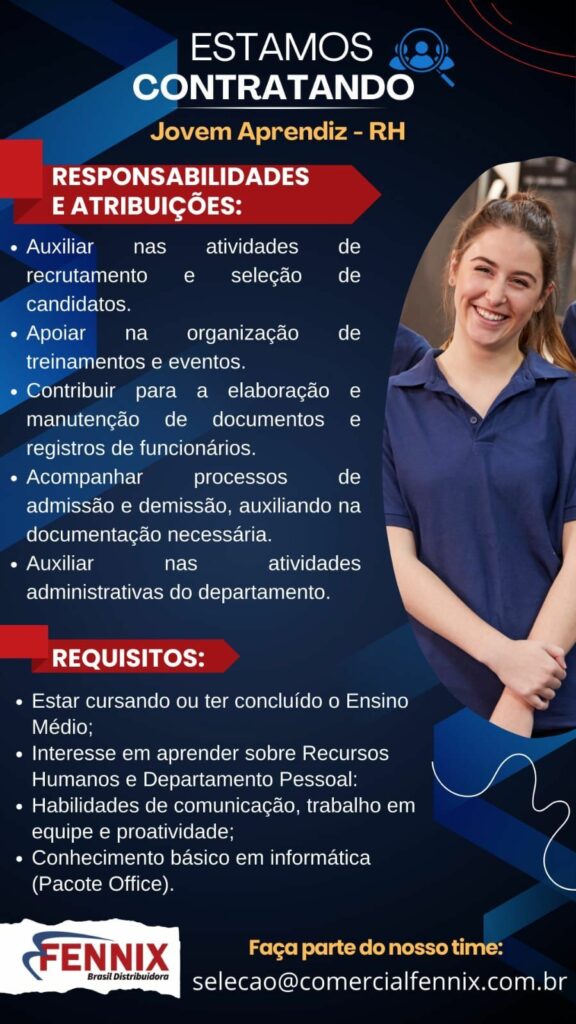 Fennix Distribuidora seleciona Jovem Aprendiz Rh; Envie seu currículo!