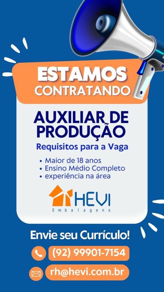 Hevi Embalagens da Amazônia Ltda seleciona Auxiliar de produção; Envie seu currículo!