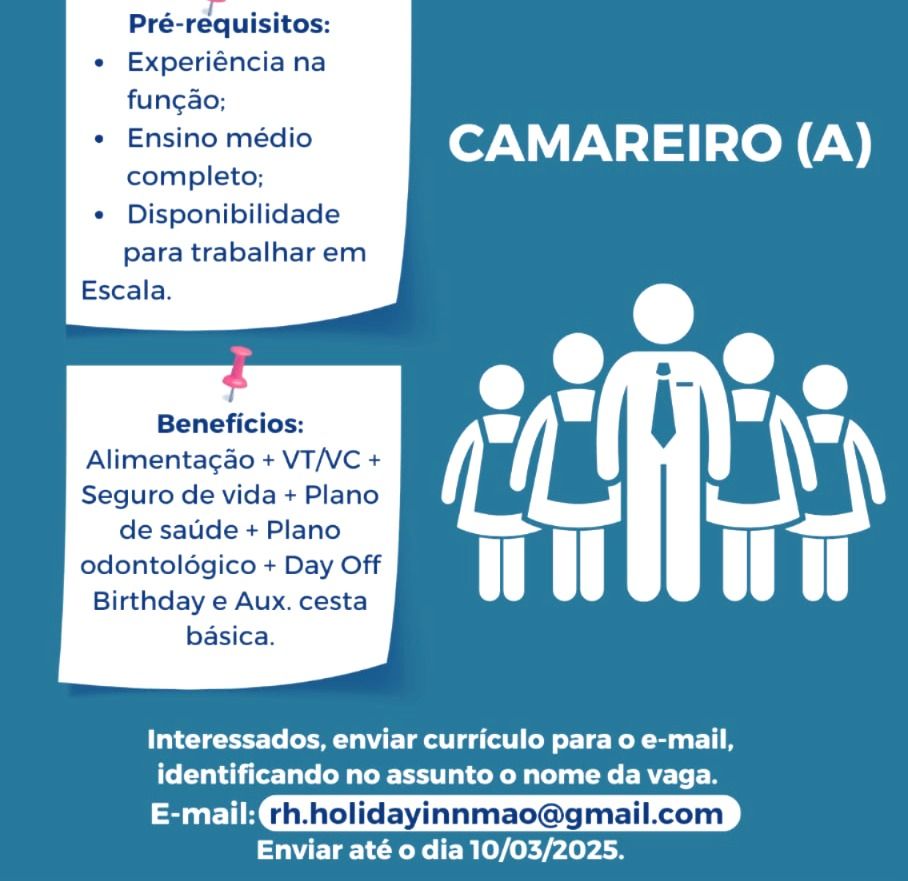 Holiday Inn Hotel seleciona Camareiro (a); Envie seu currículo!