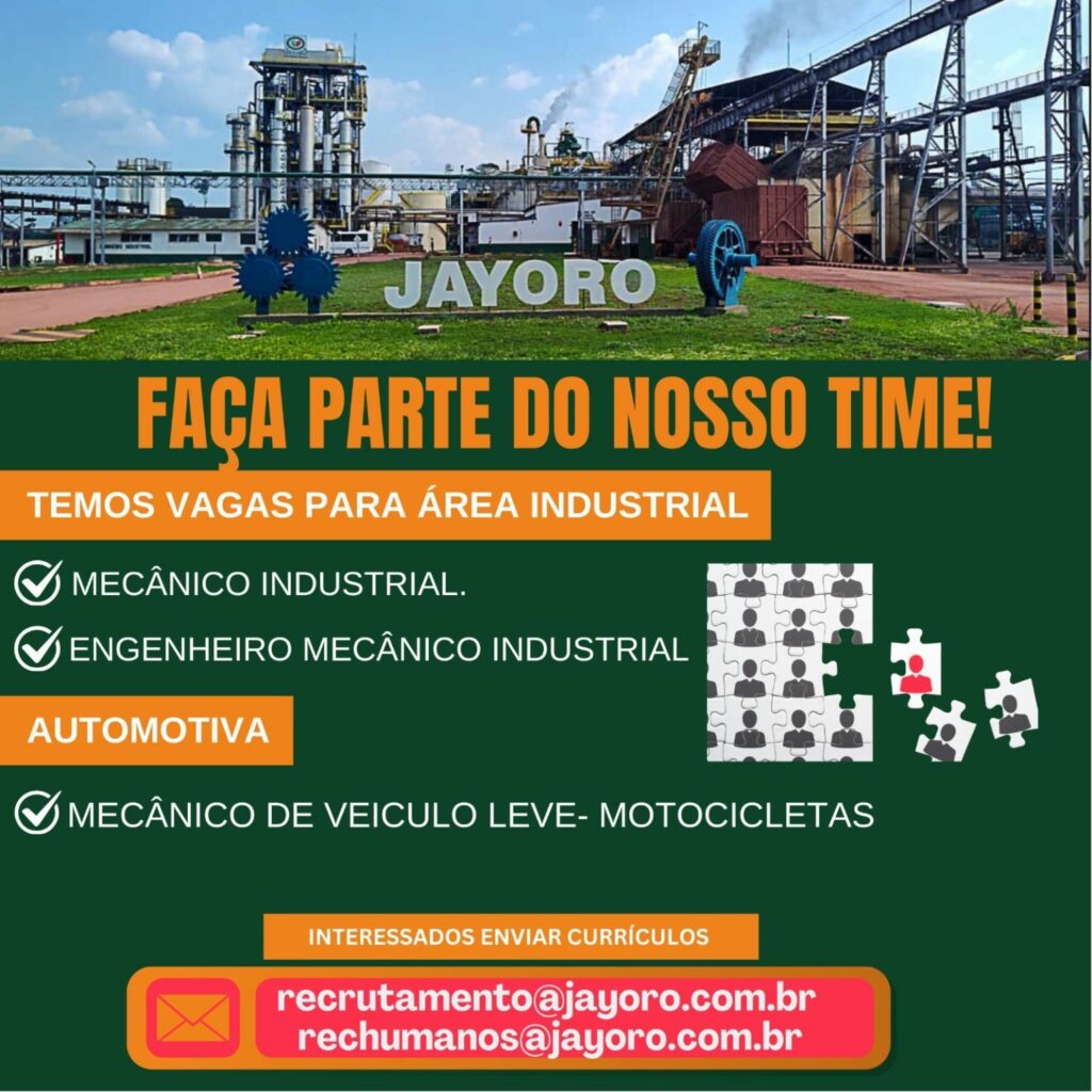 Jayoro está selecionando Mecânico industrial, Engenheiro mecânico industrial, Mecânico de veículo leve motocicletas; Envie seu currículo!