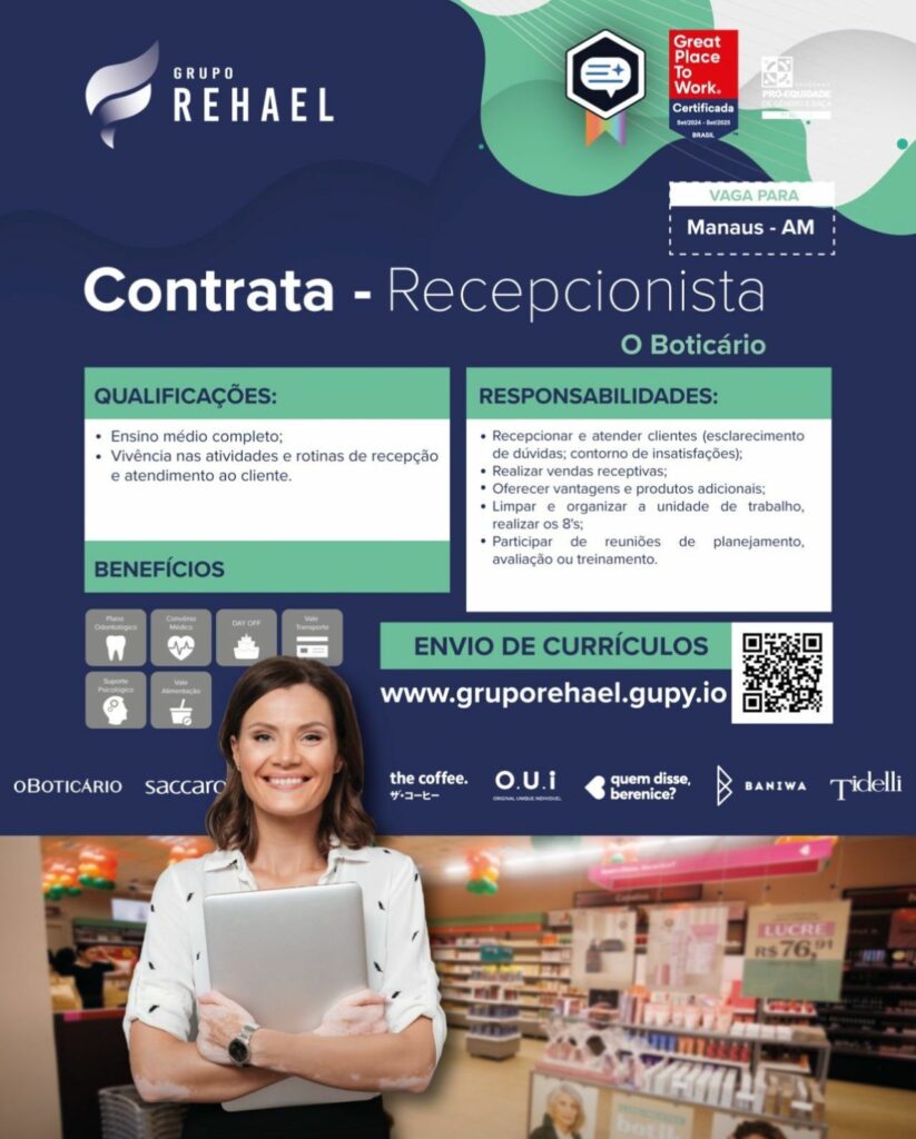 Lojas Boticário seleciona Recepcionista; Envie seu currículo!