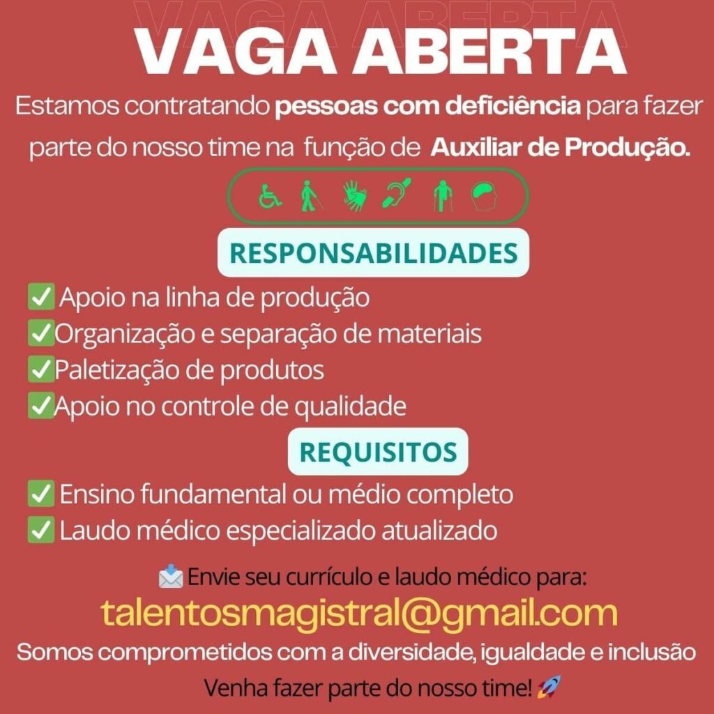 Magistral está selecionando Auxiliar de produção; Envie seu currículo!