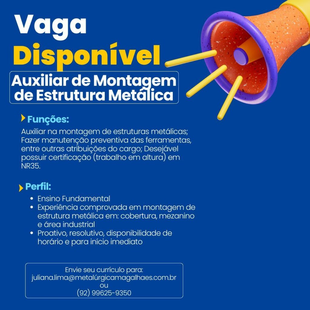 Matalurgica Magalhães seleciona para vagas de emprego; Envie seu currículo!