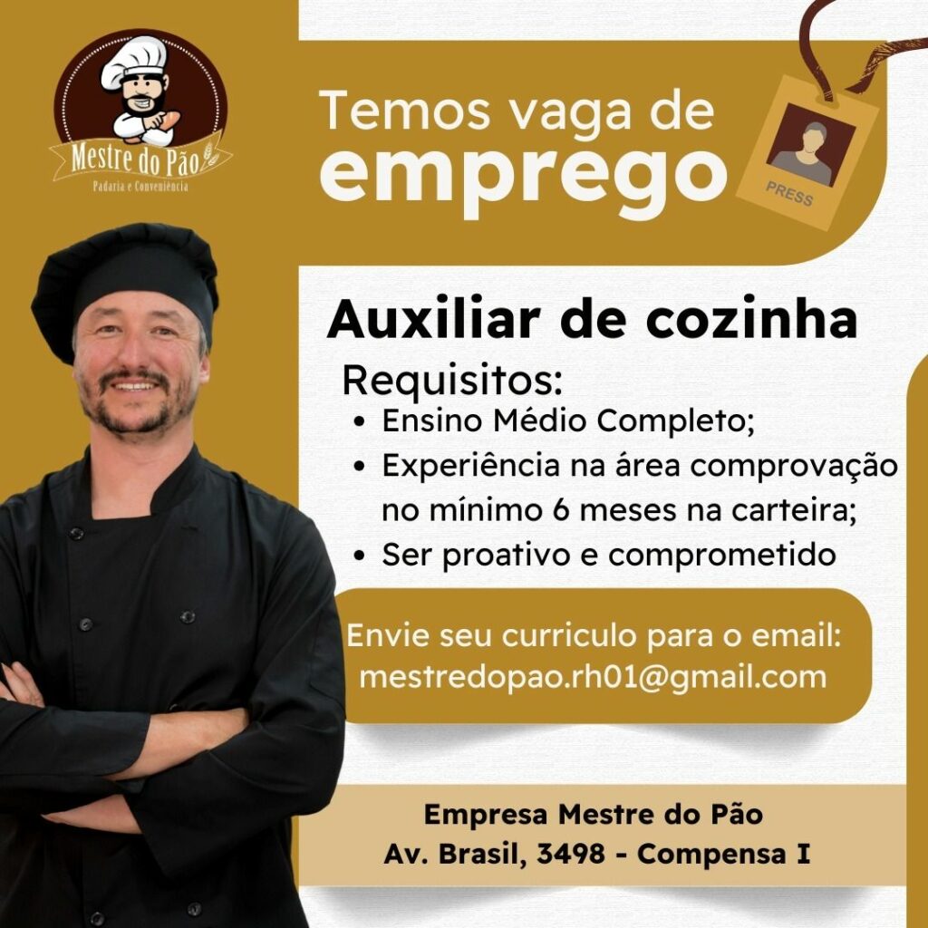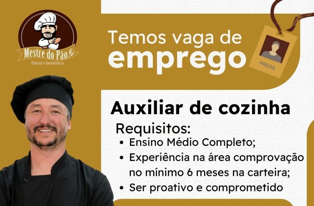 Mestre do pão seleciona Auxiliar de cozinha; Envie seu currículo!