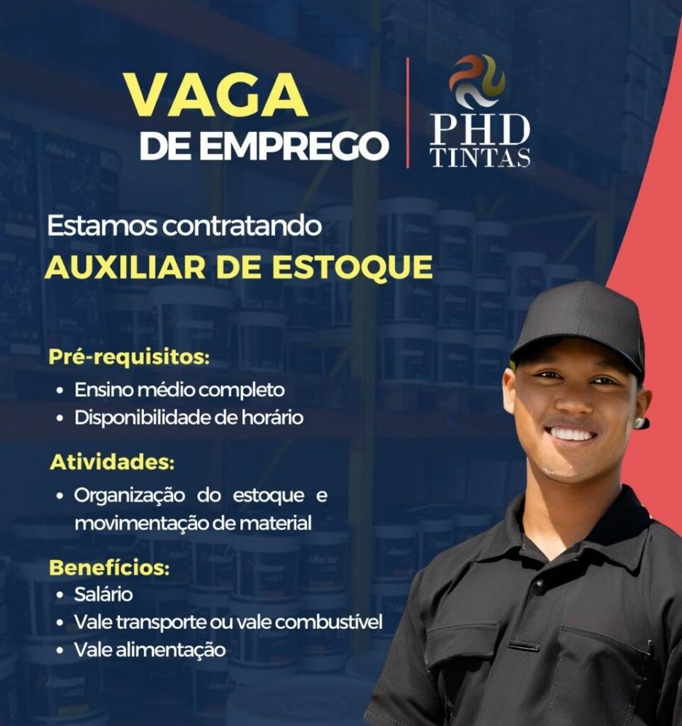 PHD Tintas seleciona Auxiliar de estoque; Envie seu currículo!