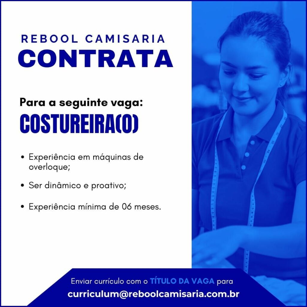 Rebool camisaria seleciona Costureira (o); Envie seu currículo!