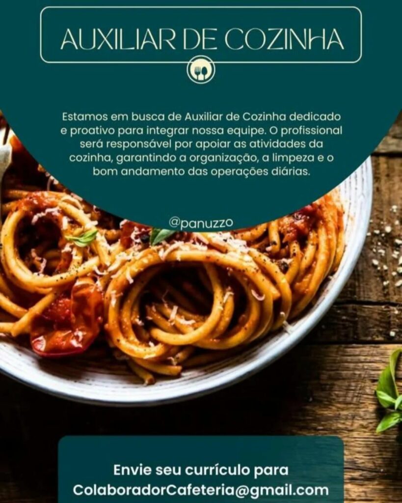 Empresa está selecionando Auxiliar de cozinha; Envie seu currículo!