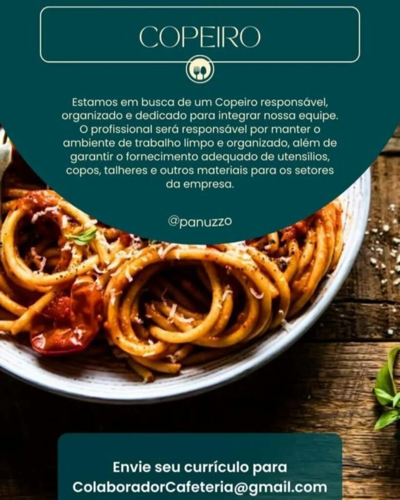 Restaurante seleciona Copeiro, Chef de cozinha, Auxiliar de cozinha, Pizzaiolo, Atendente; Envie seu currículo!