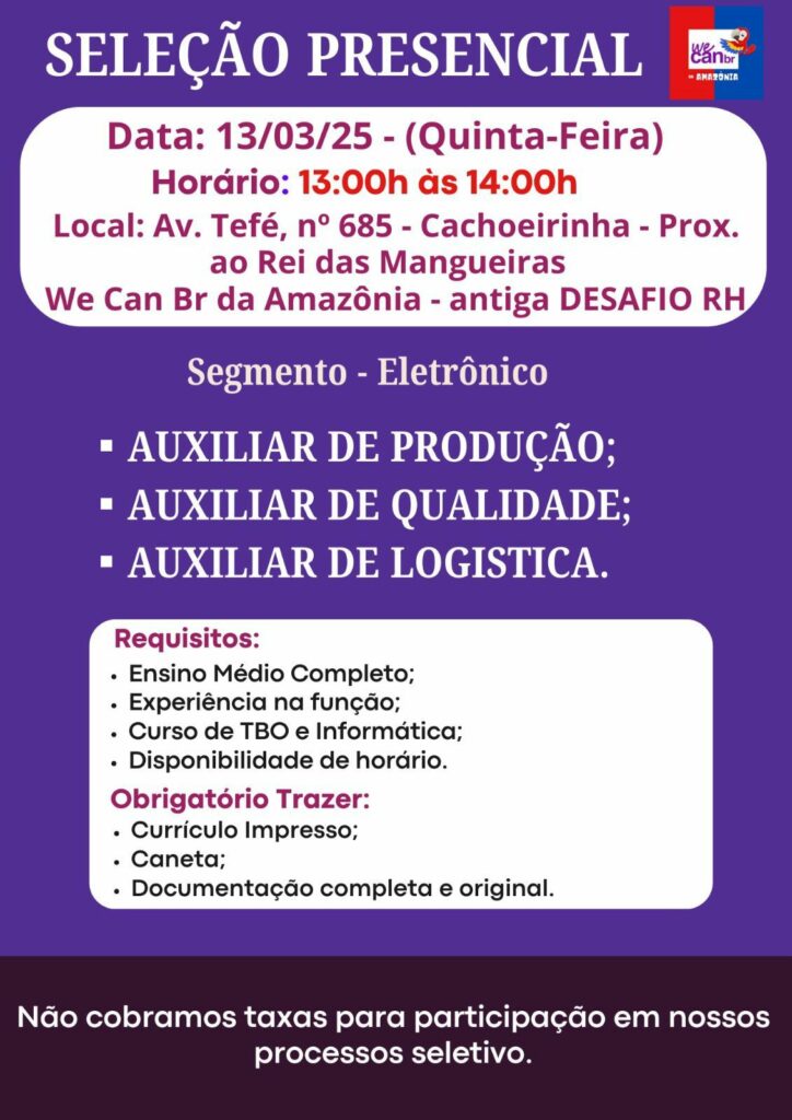 Nunca pague qualquer quantia para participar de um processo para que seja selecionado. Não compre nenhum curso, apostilas ou serviços que prometem participação na seleção ou contratação de uma vaga. E nunca insira dados bancários, cartões ou envie documentos por e-mail ou através de sites que não reconhecem. Não nos responsabilizamos por nenhum tipo de pagamento efetuado.