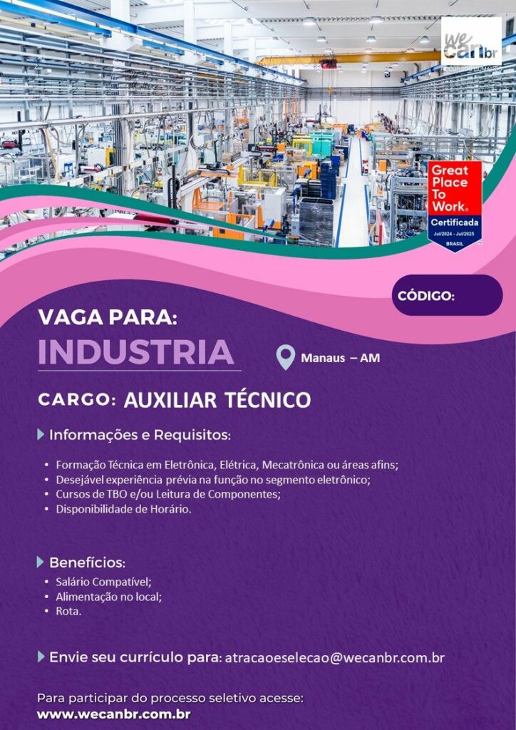 Rh está selecionando Alimentador de produção, Auxiliar técnico; Envie seu currículo!