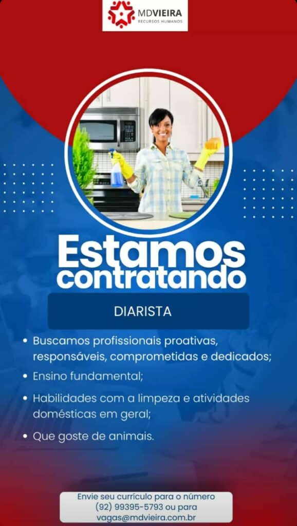 Rh está selecionando Diarista; Envie seu currículo!