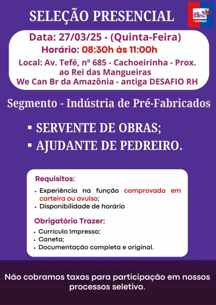Parente Andrade Abre Vagas para Trabalhar em URUCU Escala 14×14