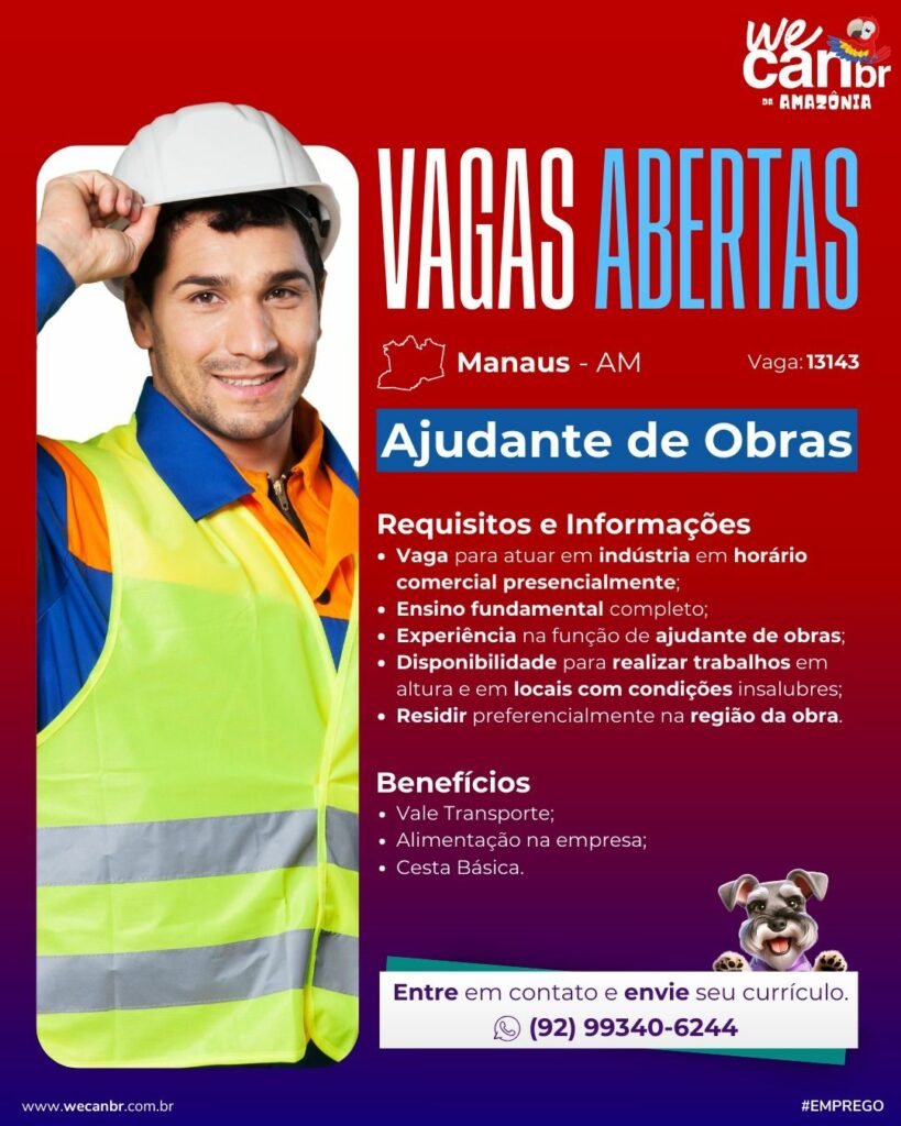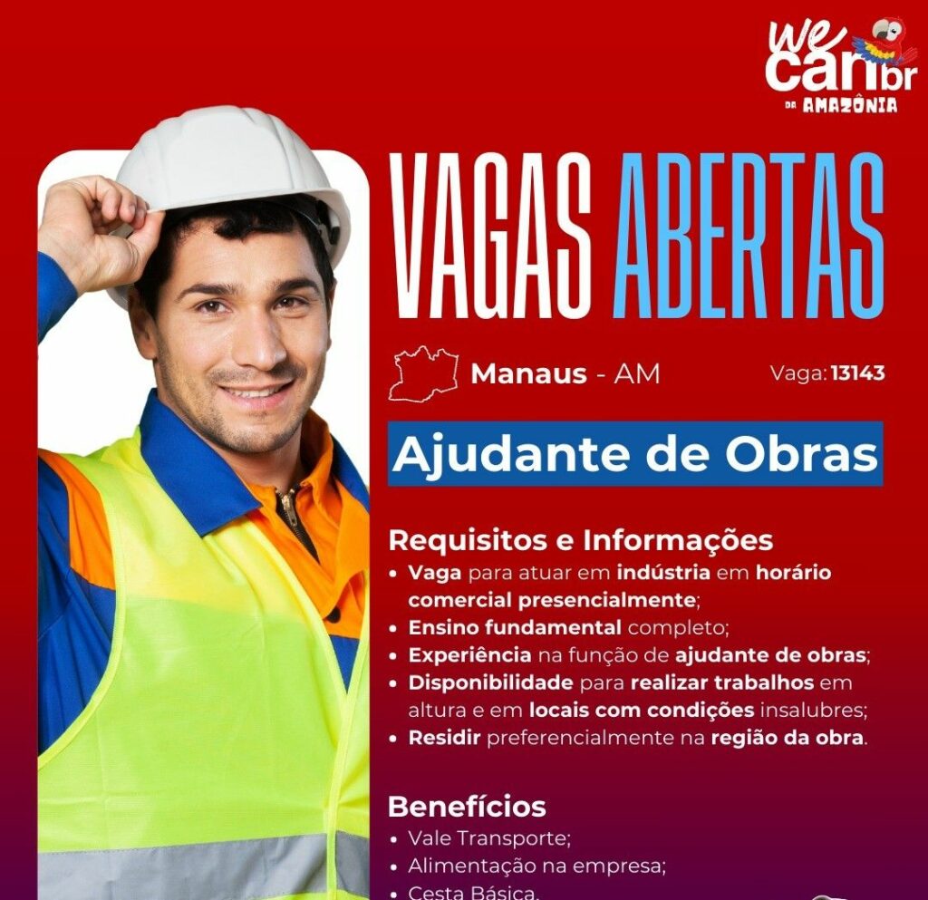 Rh está selecionando para vaga de Ajudante de obras; Envie seu currículo!