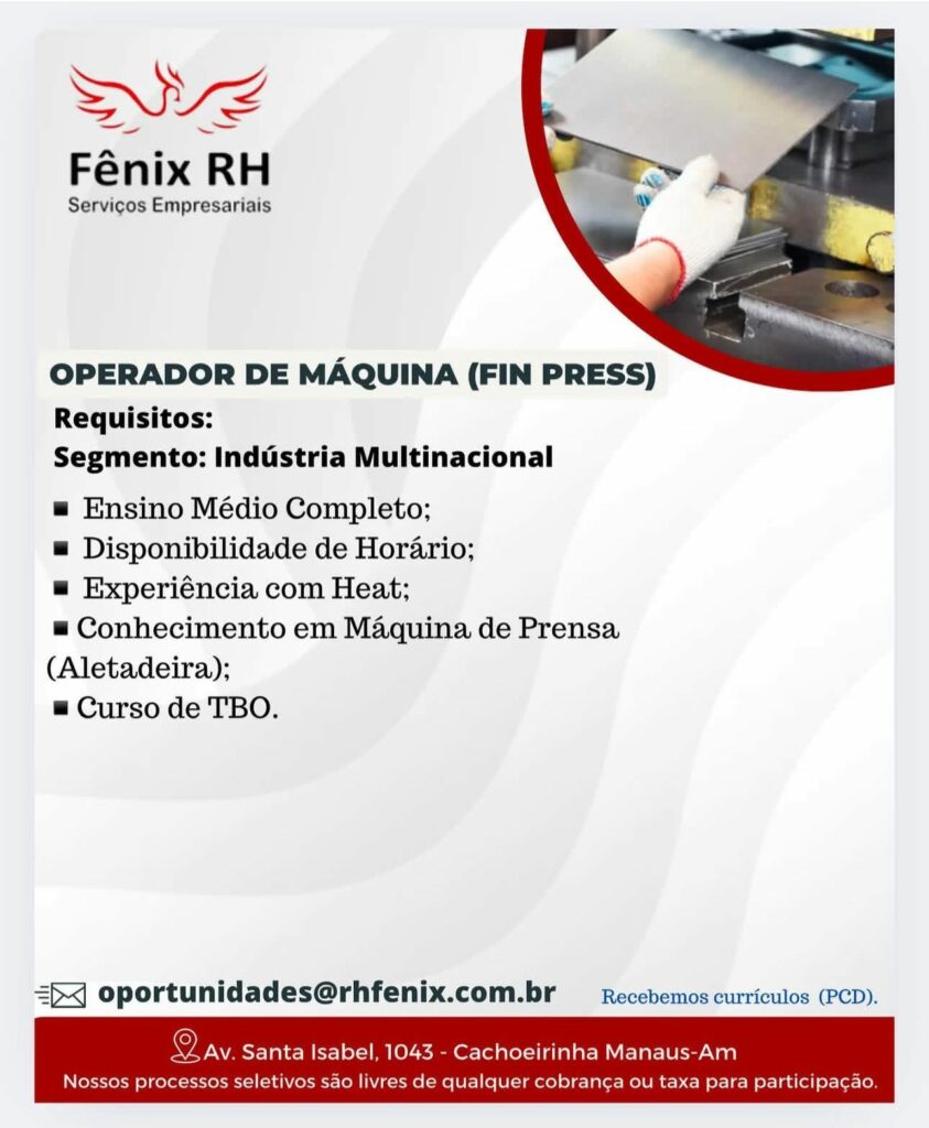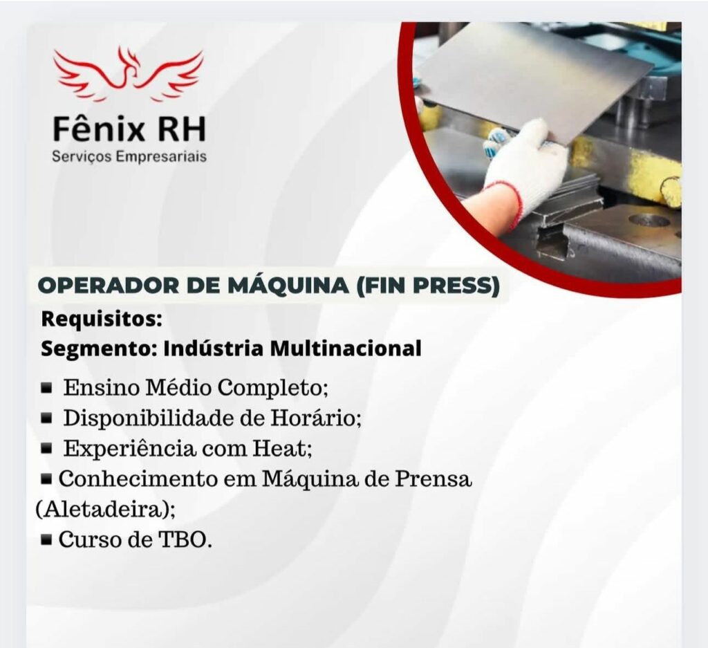 Rh seleciona Operador de máquina fin press; Envie seu currículo!