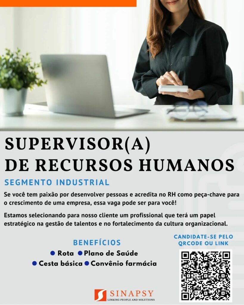 Rh seleciona Supervisor (a) de recursos humanos; Envie seu currículo!