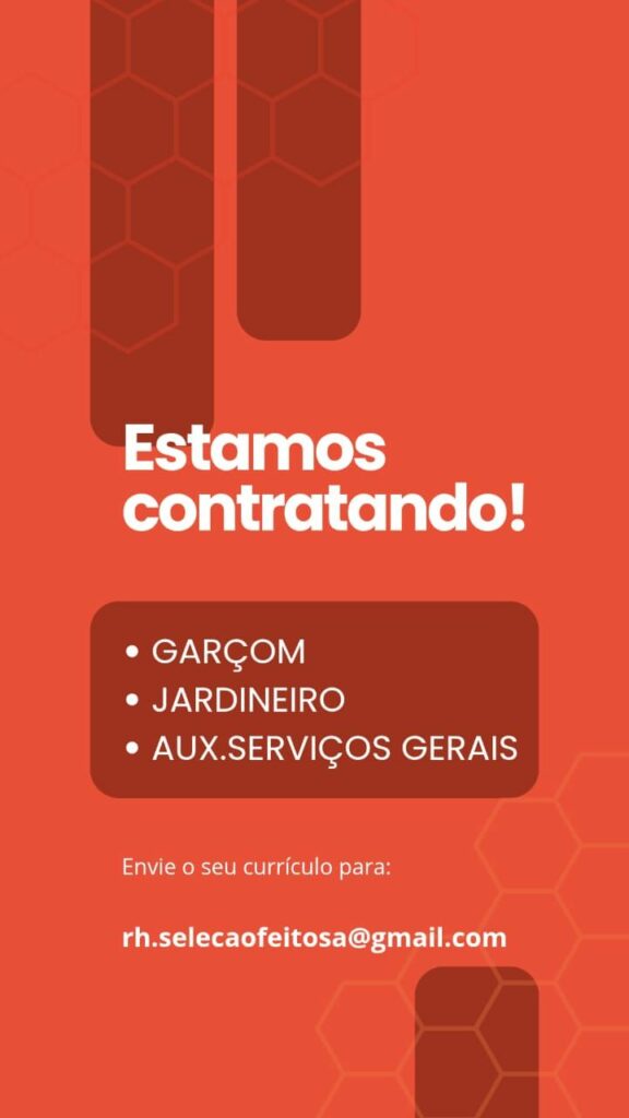 Seleção para seguintes vagas Garçom, Jardineiro, Auxiliar de serviços gerais; Envie seu currículo!
