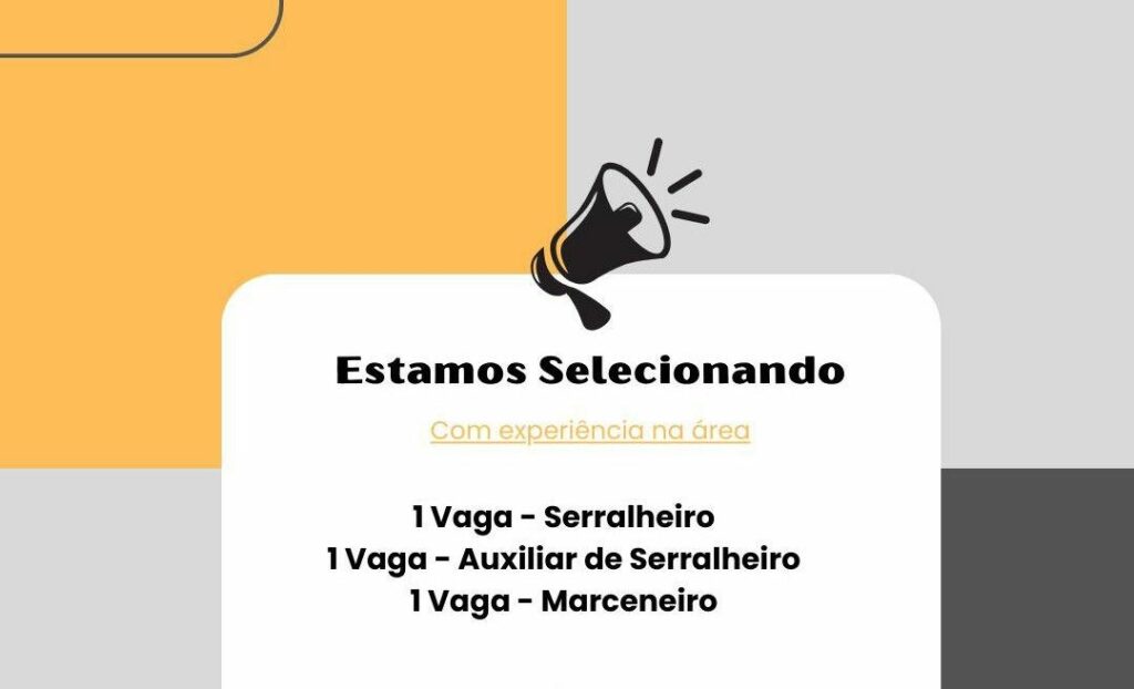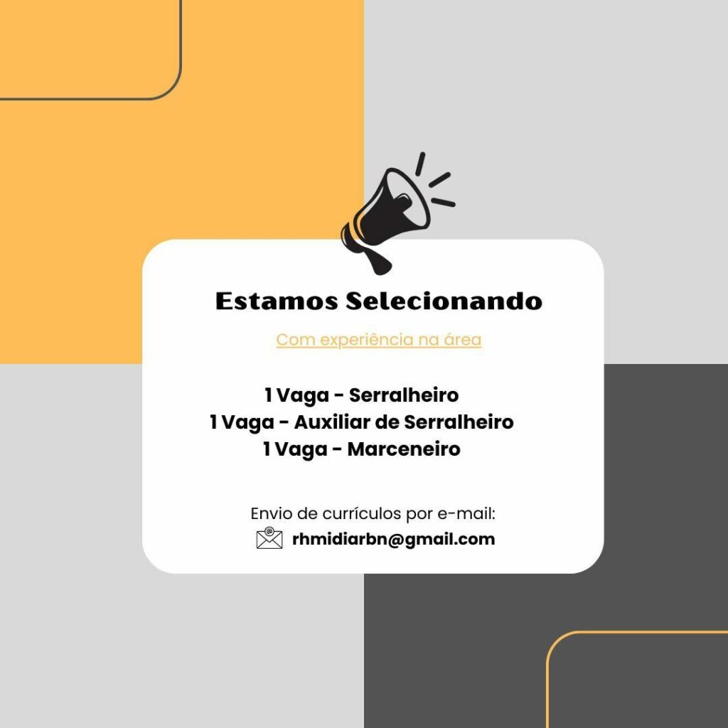 Seleção para seguintes vagas Serralheiro, Auxiliar de serralheiro, Marceneiro; Envie seu currículo!