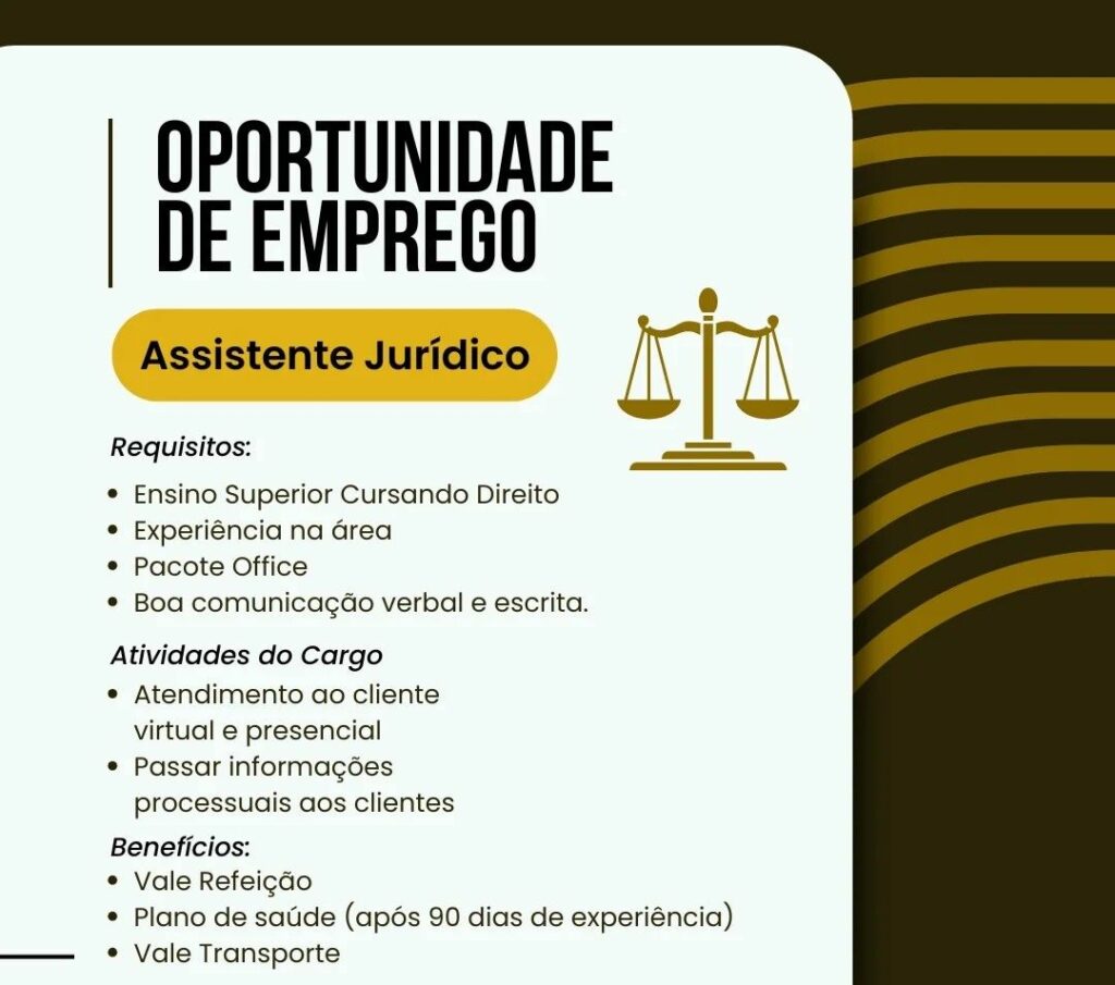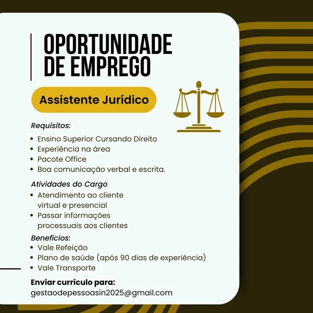Seleção para vaga de Assistente jurídico; Envie seu currículo!