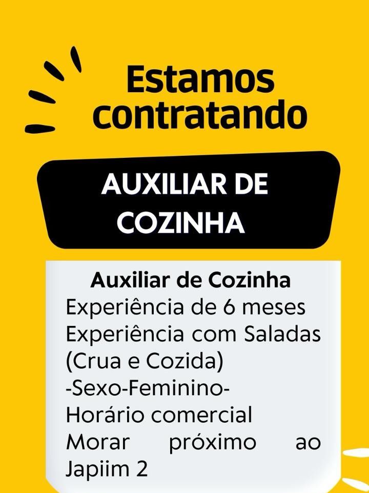 Seleção para vaga de Auxiliar de cozinha; Envie seu currículo!