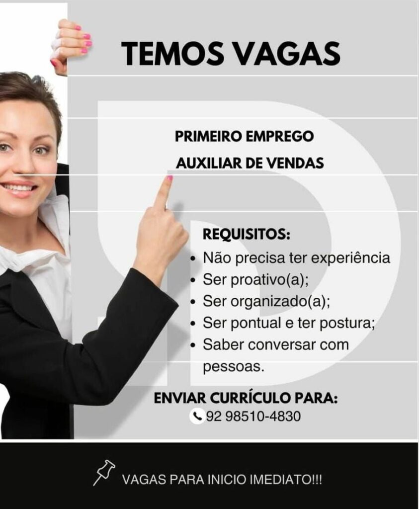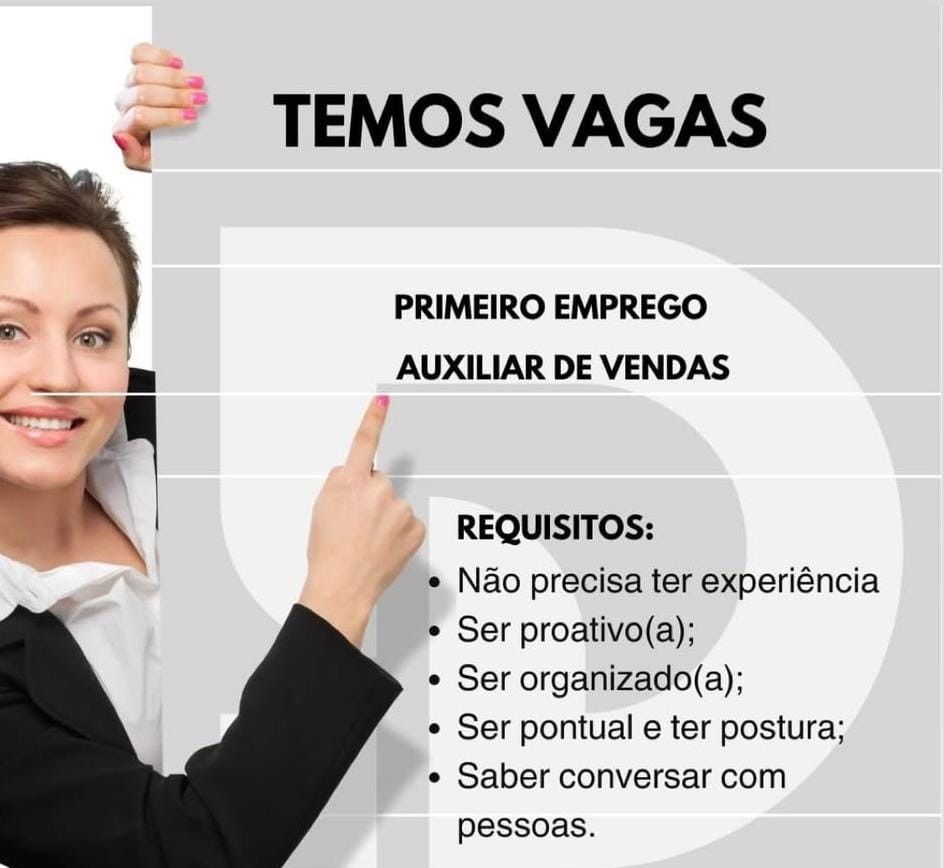Seleção para vaga de Auxiliar de vendas primeiro emprego; Envie seu currículo!