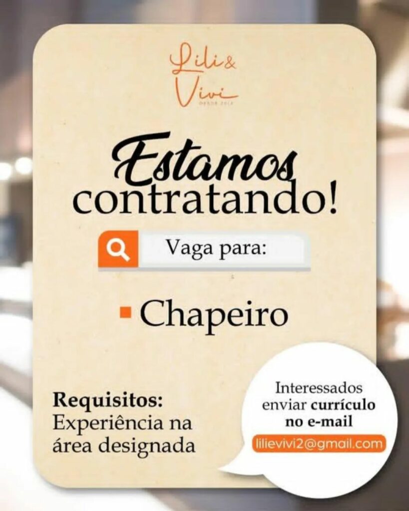 Seleção para vaga de Chapeiro; Envie seu currículo!