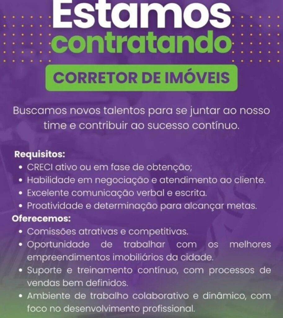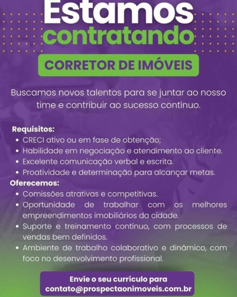 Seleção para vaga de Corretor de Imóveis; Envie seu currículo!
