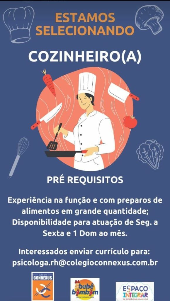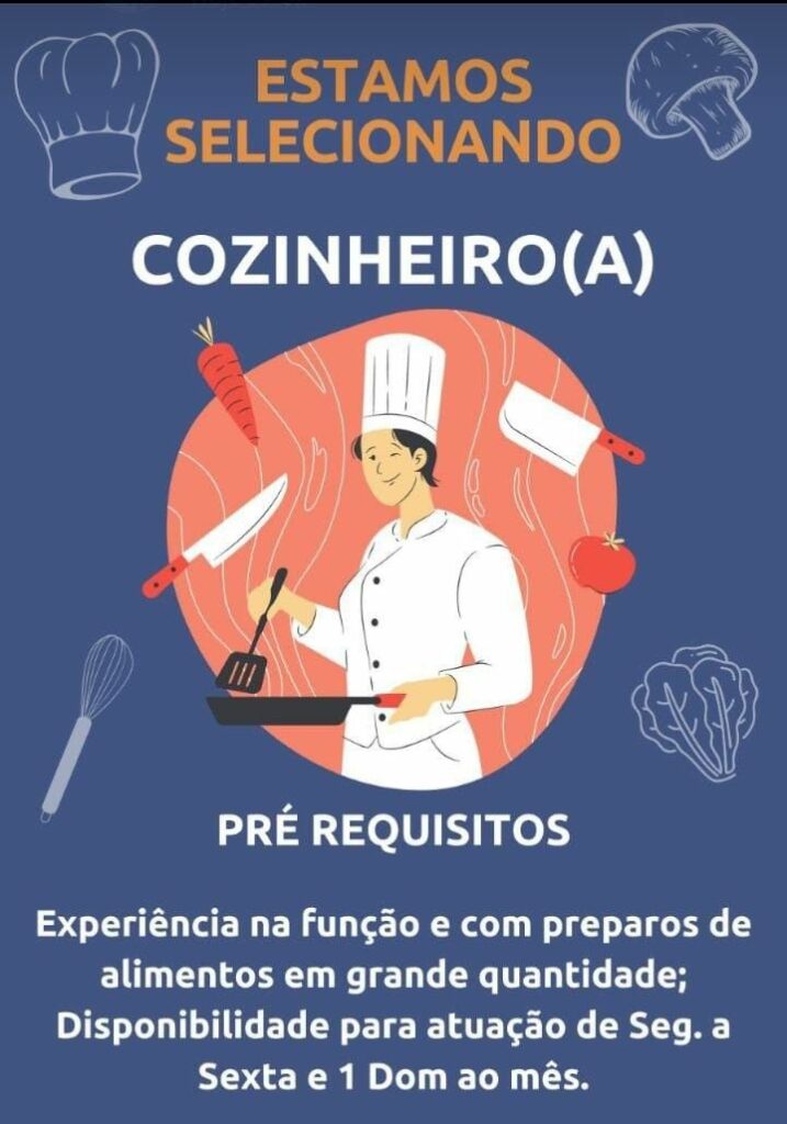 Seleção para vaga de Cozinheiro (a); Envie seu currículo!