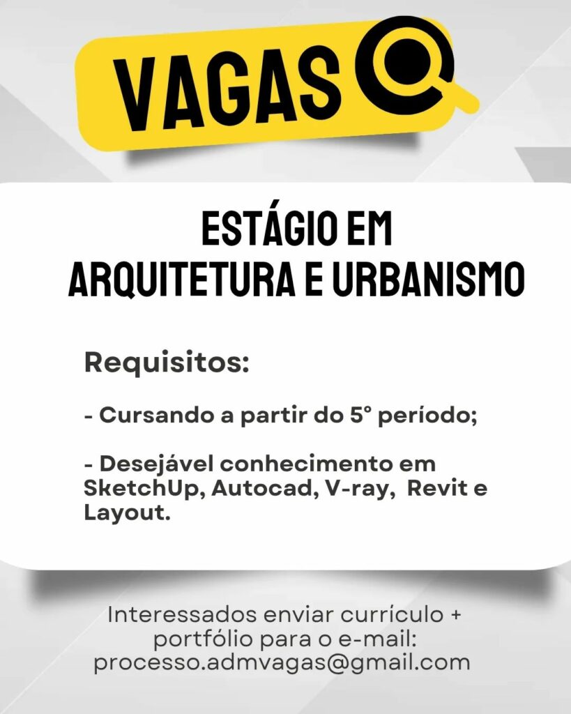 Seleção para vaga de Estágio em arquitetura e urbanismo; Envie seu currículo!