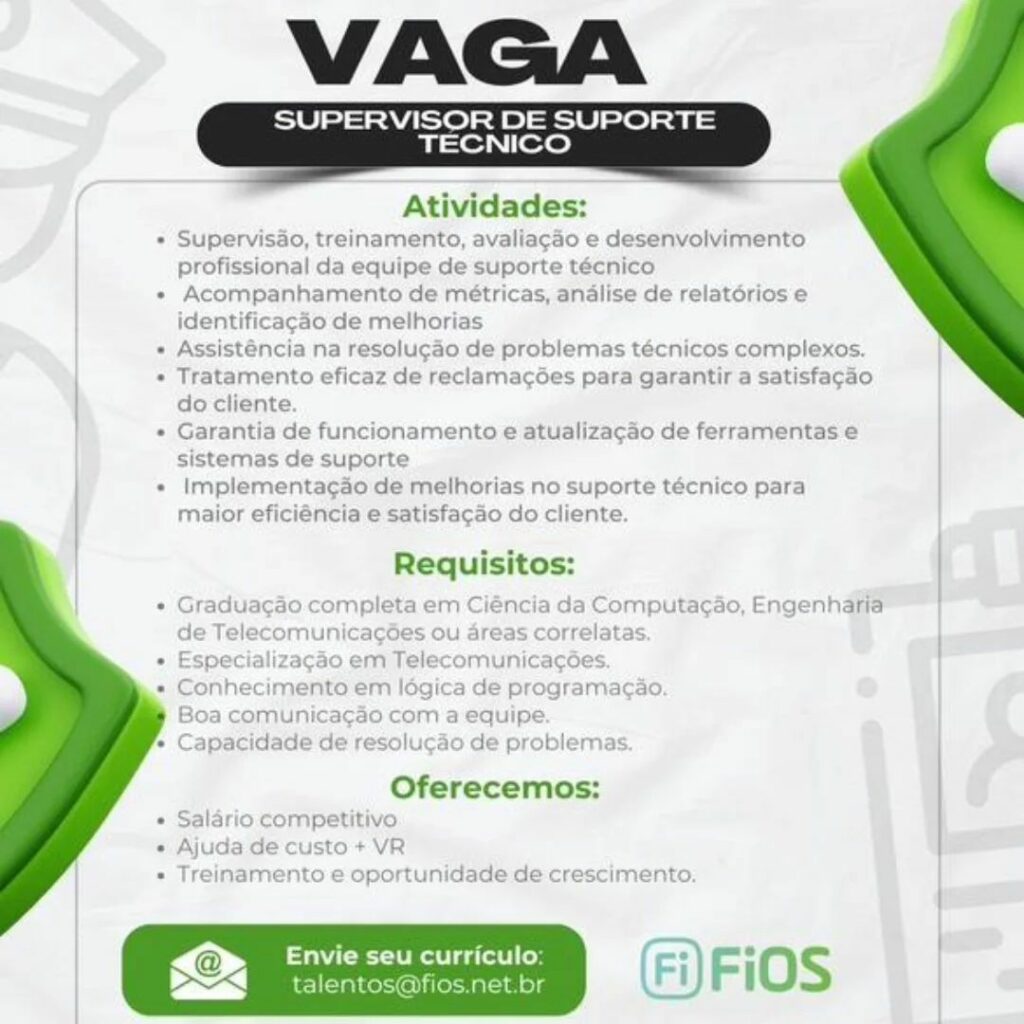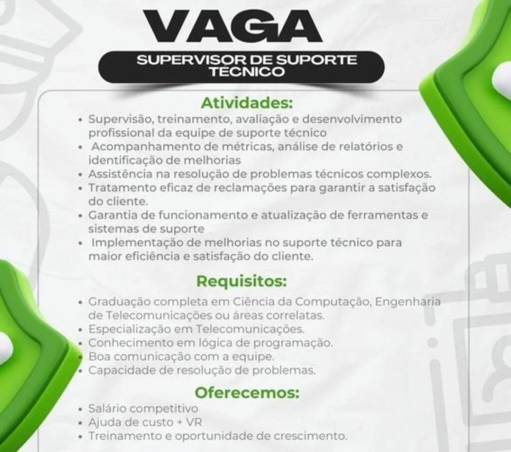 Seleção para vaga de Gerente comercial, Supervisor de suporte técnico; Envie seu currículo!