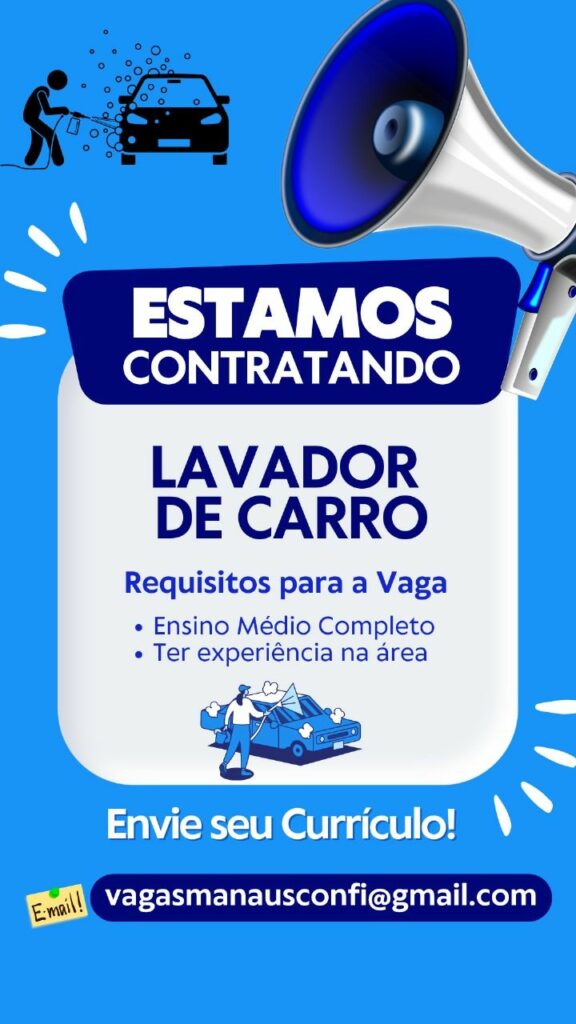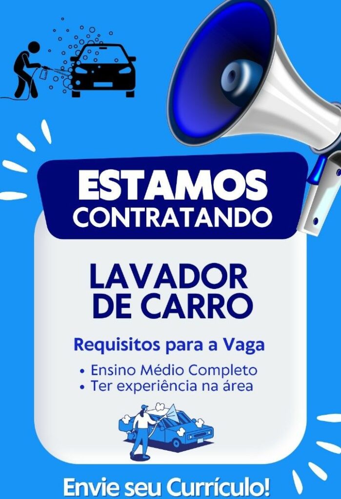 Seleção para vaga de Lavador de carros; Envie seu currículo!