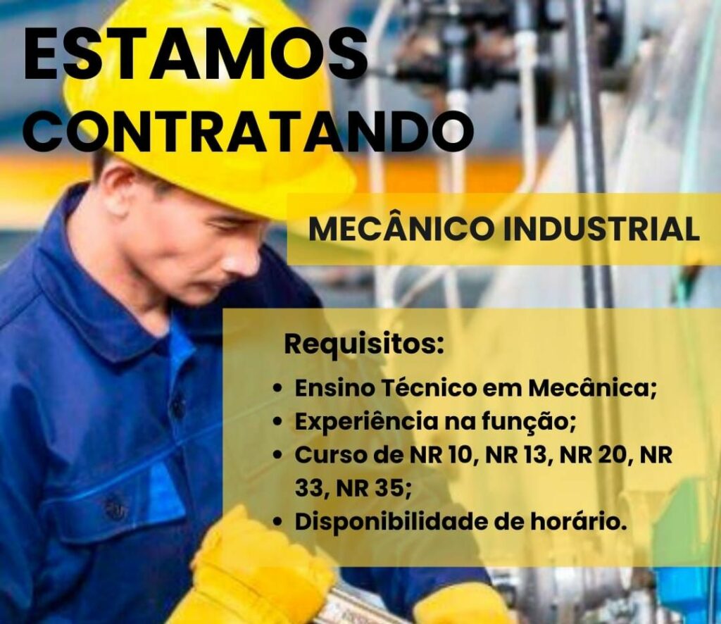 Seleção para vaga de Mecânico industrial; Envie seu currículo!