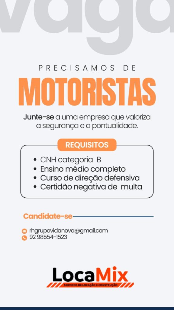 Seleção para vaga de Motoristas; Envie seu currículo!
