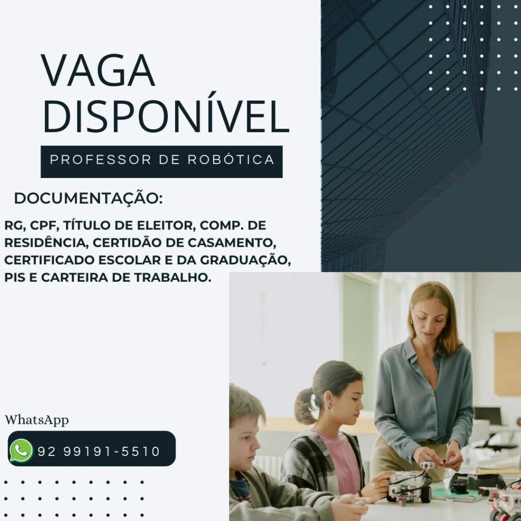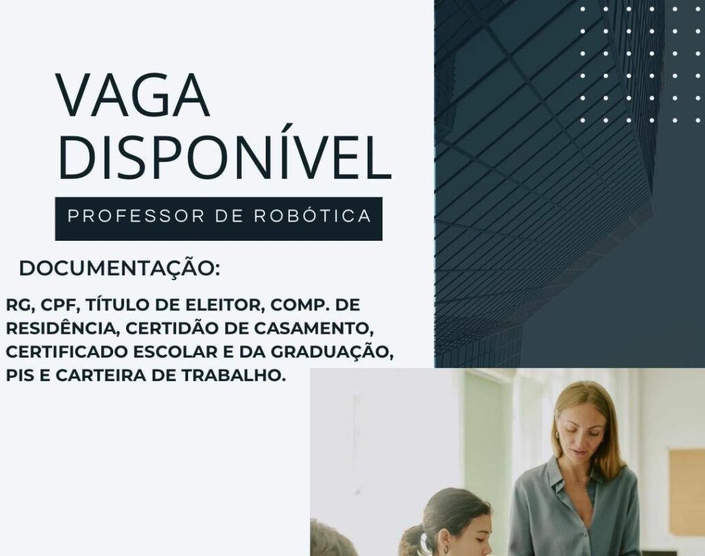 Seleção para vaga de Professor de robótica; Envie seu currículo!