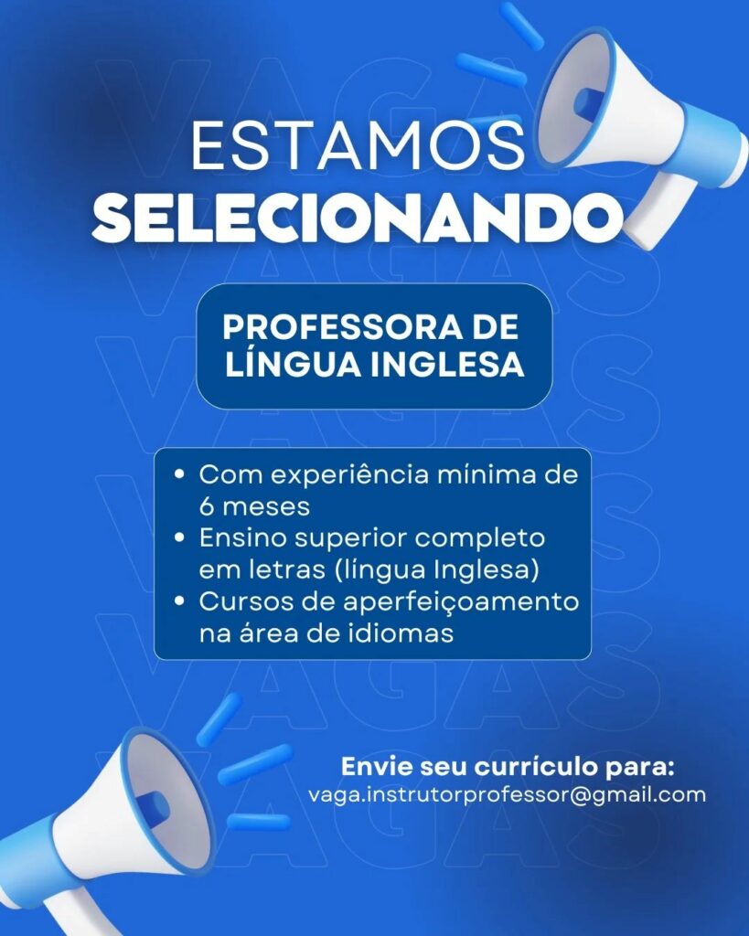 Seleção para vaga de Professora de língua inglesa; Envie seu currículo!