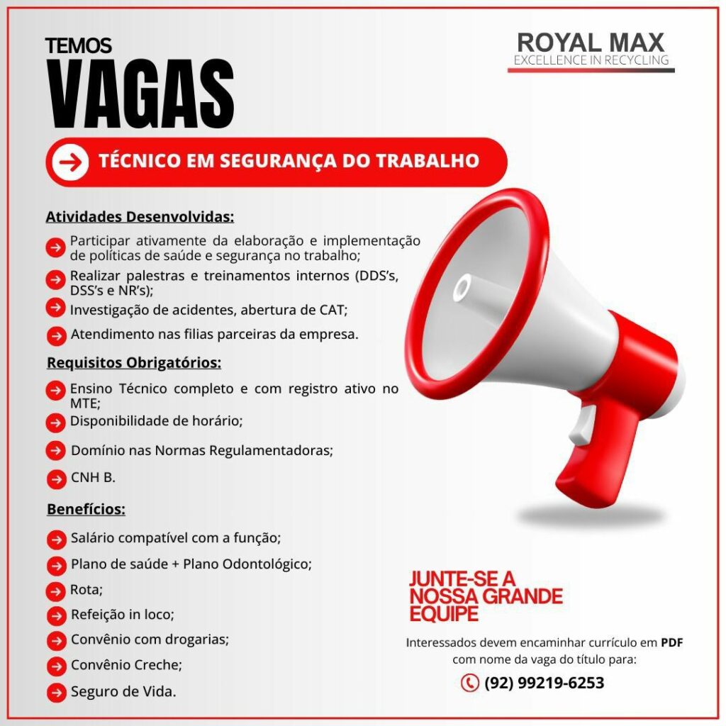 Seleção para vaga de Técnico de segurança do trabalho; Envie seu currículo!