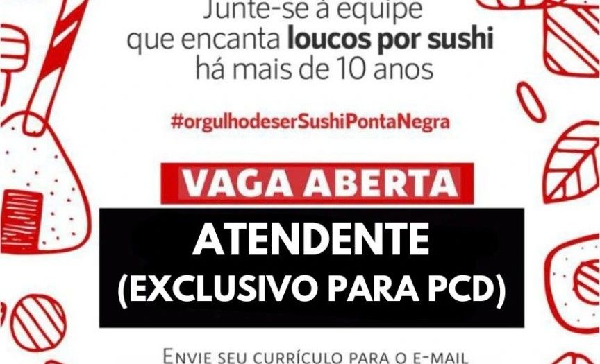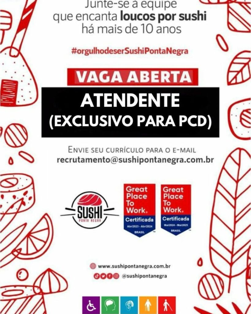 Sushi ponta negra seleciona Atendente; Envie seu currículo!
