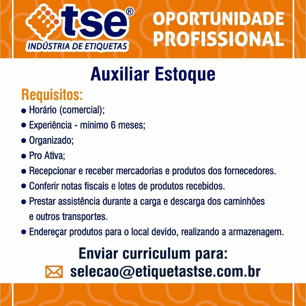 TSE indústria de etiquetas seleciona Auxiliar de estoque; Envie seu currículo!