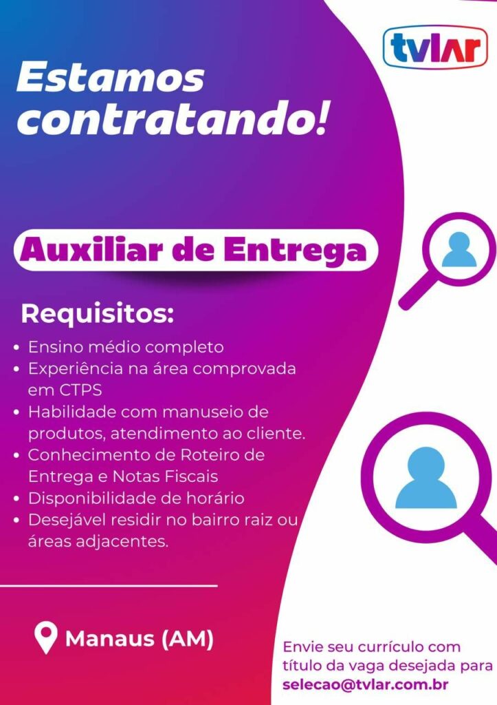 TV lar seleciona Vendedor, Auxiliar de entrega, Auxiliar de estoque; Envie seu currículo!