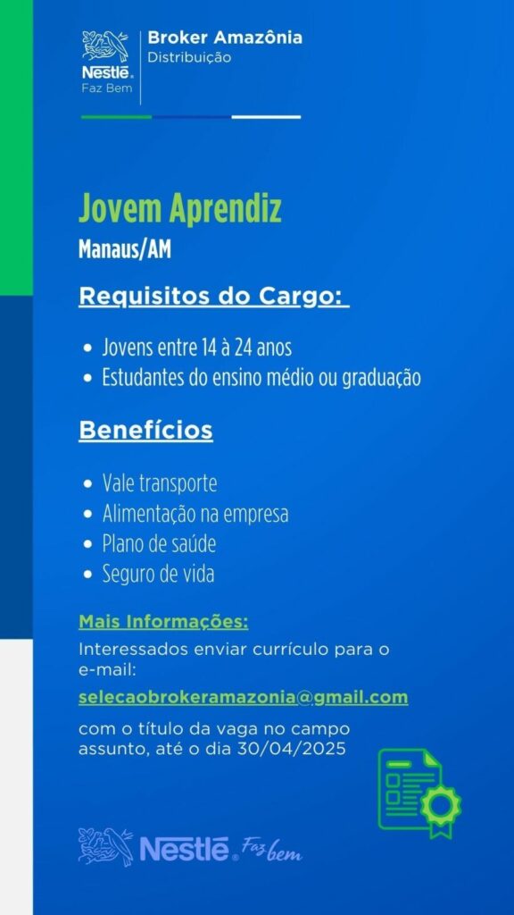 Broker da Amazônia seleciona Jovem Aprendiz; Envie seu currículo!