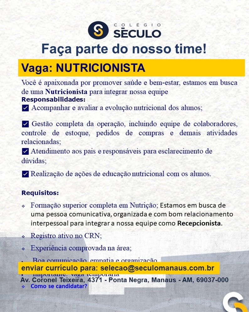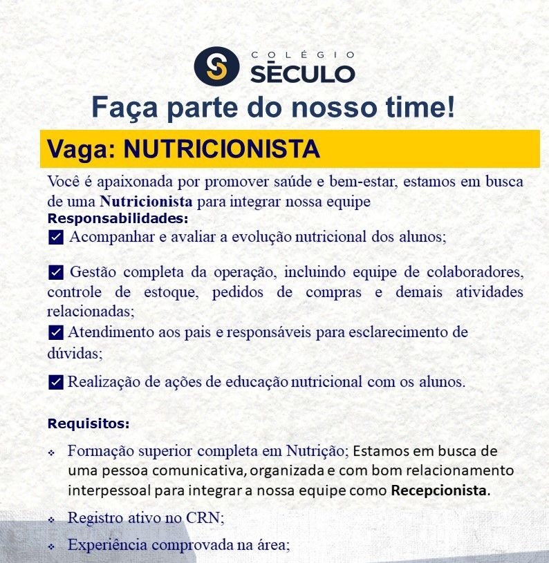 Centro educacional seleciona Nutricionista; Envie seu currículo!