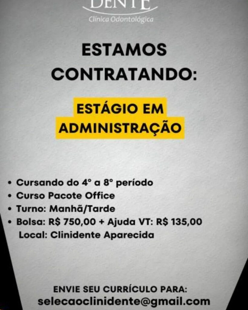 Clínica dermatológica seleciona Auxiliar de serviços gerais, Protético, Dentista, Estágio em administração; Envie seu currículo!