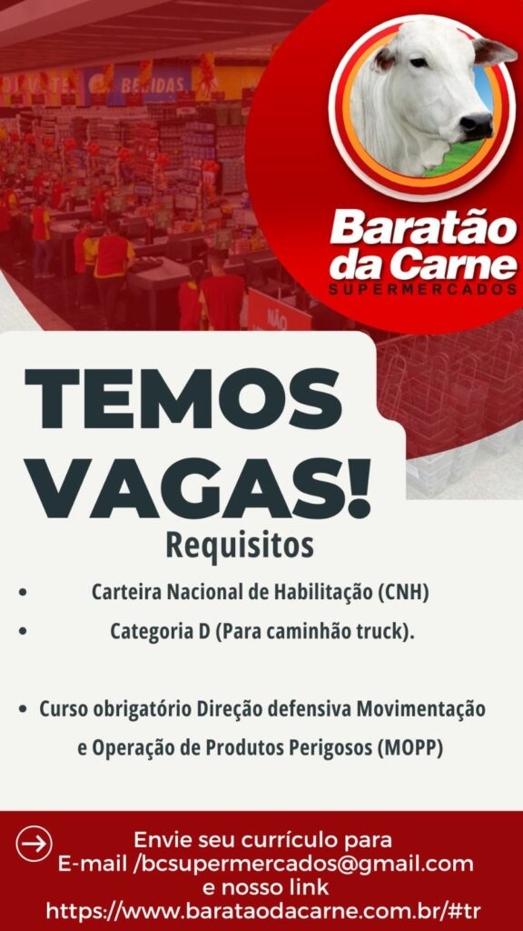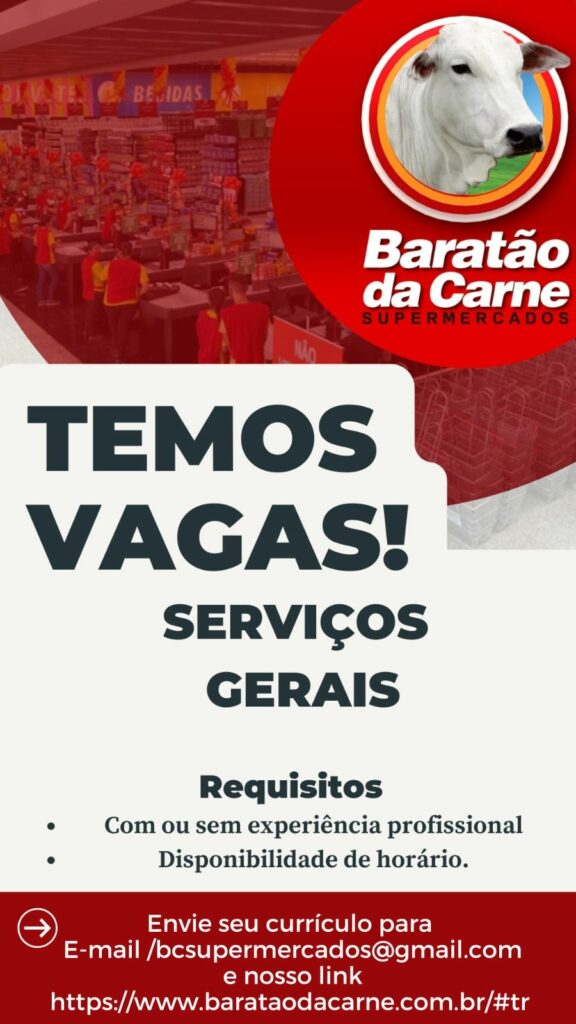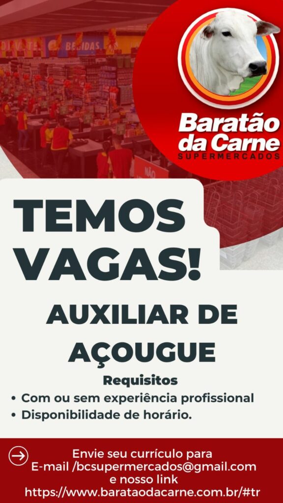 Com ou sem experiência profissional! Baratão da carne seleciona serviços gerais, Pizzaiolo, Motorista, Auxiliar de Peixaria, Auxiliar de açougue; Envie seu currículo!