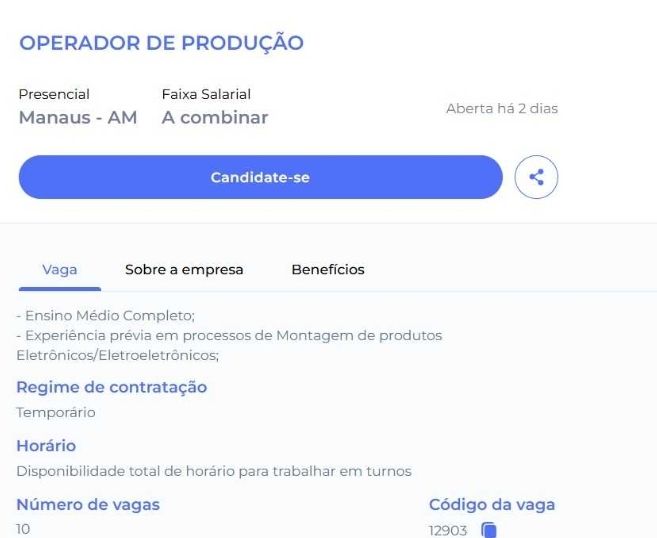 Com Salário Acima de R$ 2 Mil Empresa Contrata Operador de Produção