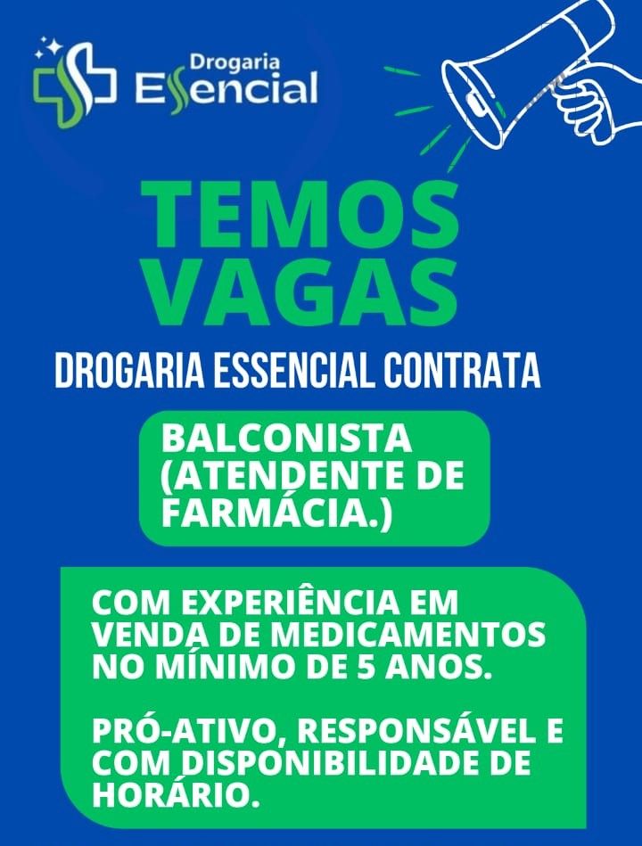 Drogaria seleciona Balconista (Atendente de farmácia); Envie seu currículo!