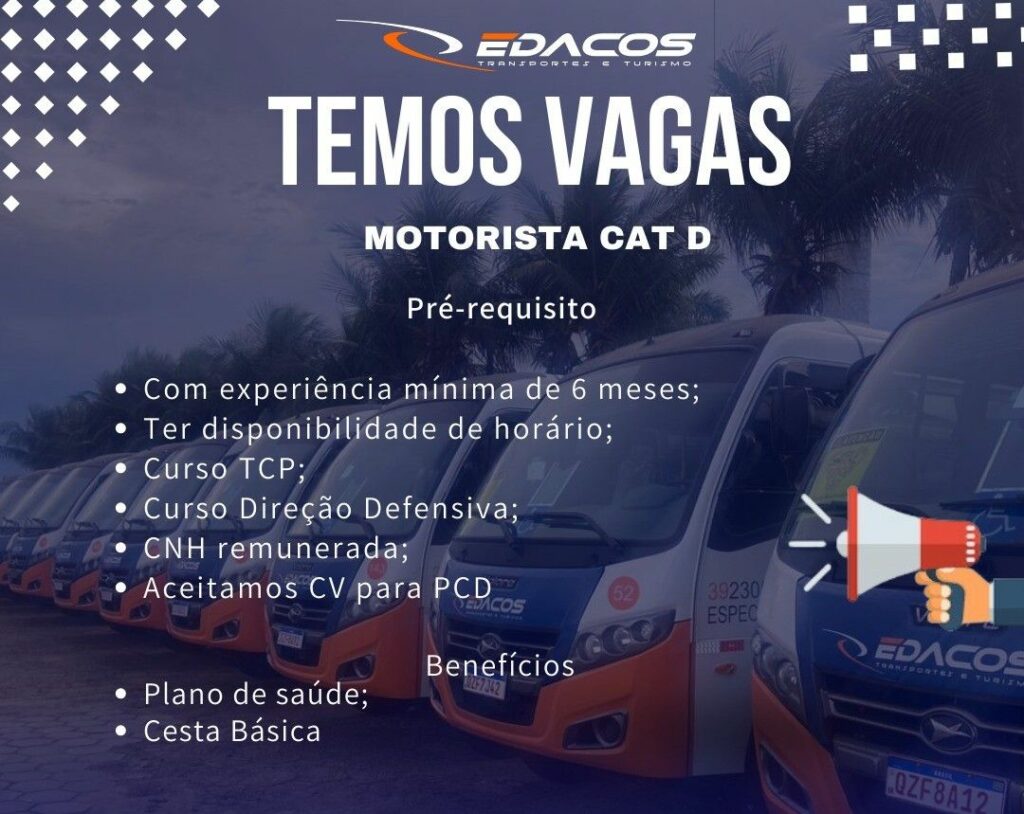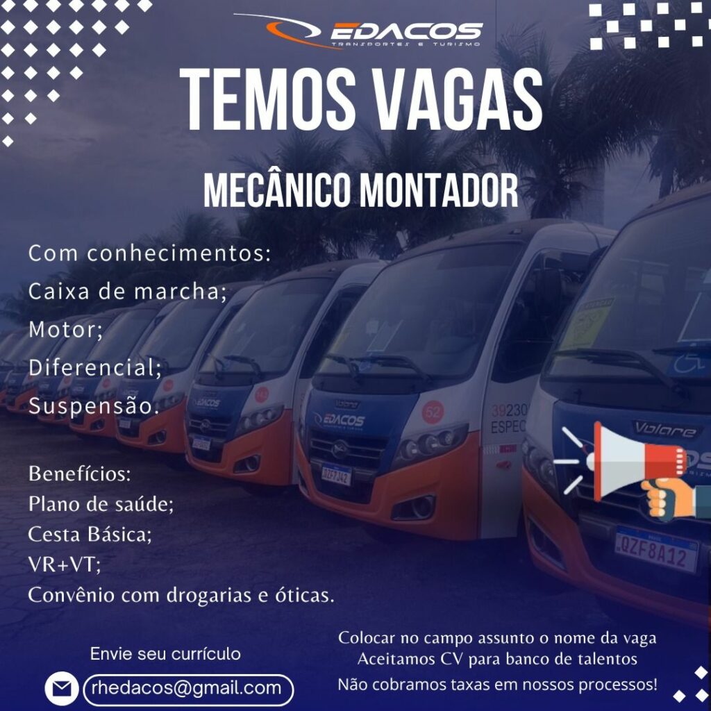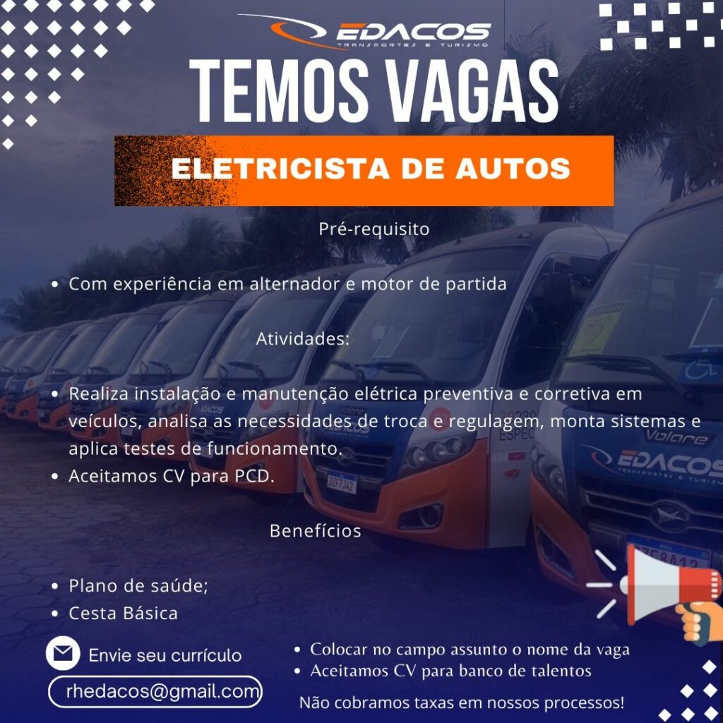 Edacos transporte seleciona Motorista Cat D, Mecânico Montador, Eletricista de Autos, Técnico de segurança do trabalho; Envie seu currículo!