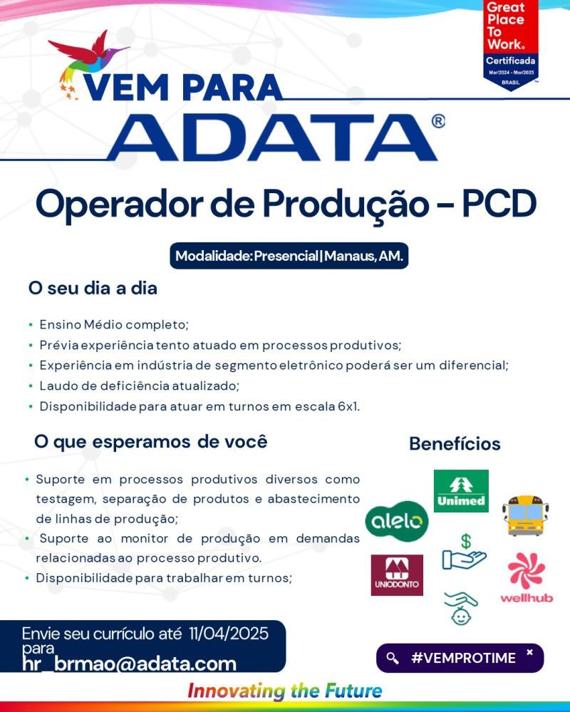 Empresa Adata seleciona Operador de produção, Técnico de smt; Envie seu currículo!