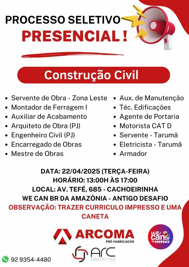Empresa Arcoma seleciona para vagas de emprego