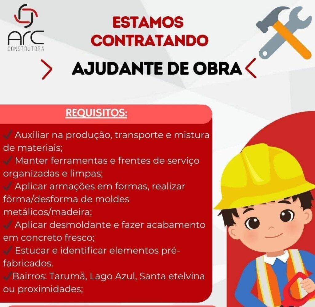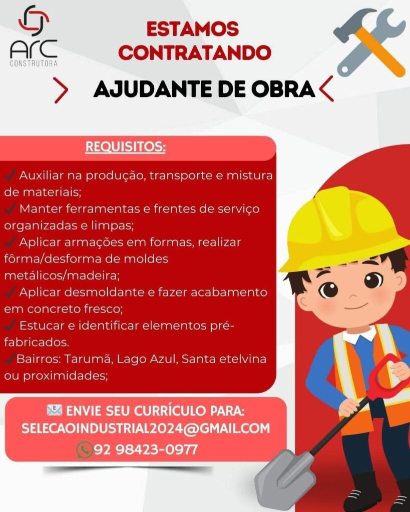 Empresa está selecionando Ajudante de obra; Envie seu currículo!